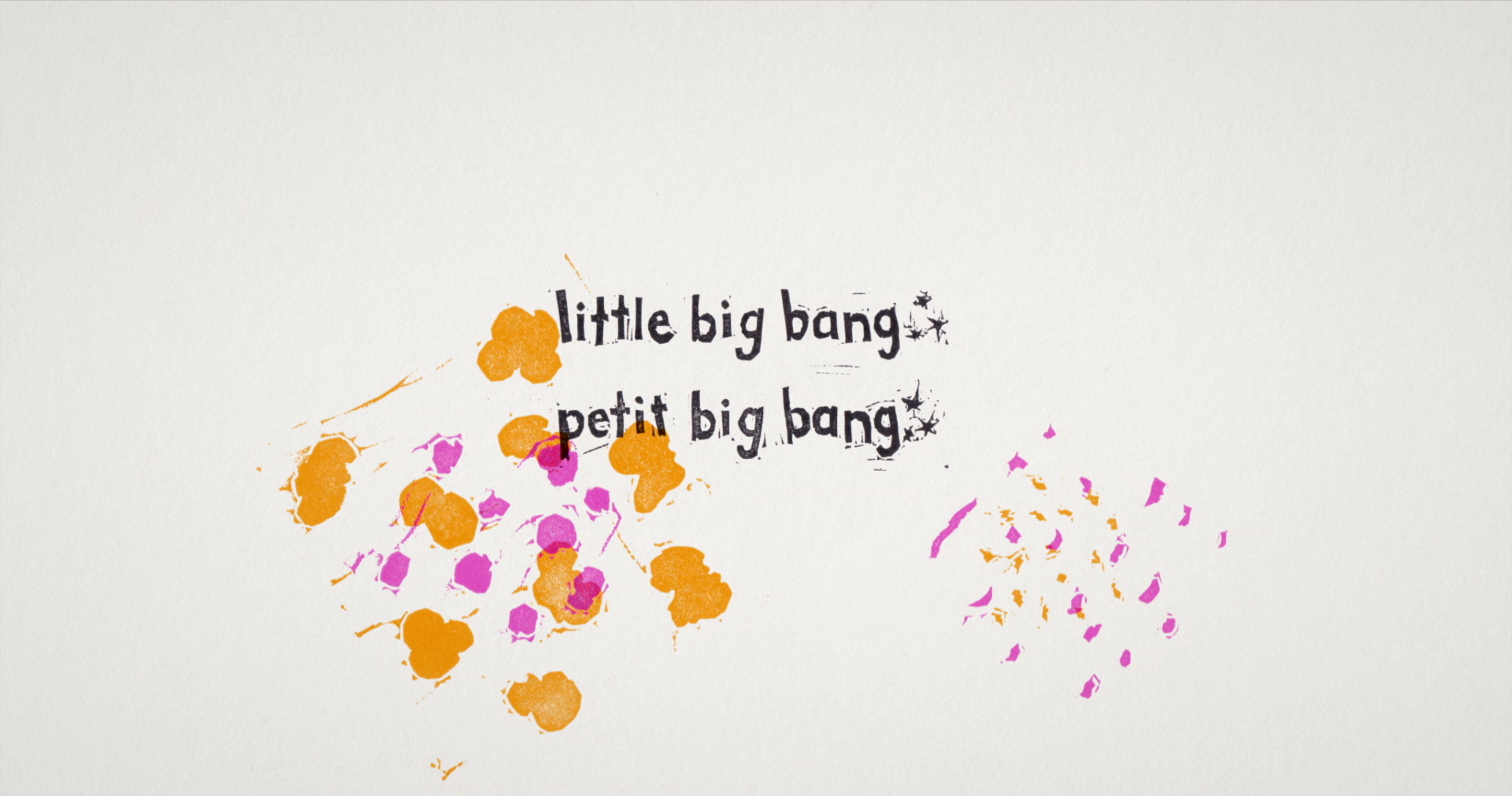 Little Big Bang is a 1 minute linocut animation about parenthood, created as part of the National Film Board's 2016 edition of their Hothouse program. Each linocut was cut by hand and printed in my basement on a Kelsey 3x5 tabletop press. The film is streaming on the NFB's site.